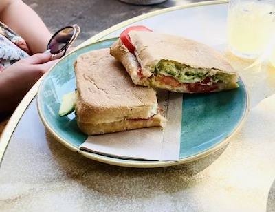 The Tricolore Ciabatta was well-packed with avocado, tomatoes, Buffalo mozzarella and fresh basil, and I could hear the crunch of the thick slices of bread as it was bitten into. Delicious.